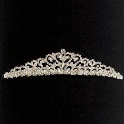 A silver and glistening rhinestone low profile tiara. Our tiaras are made from durable material and premium rhinestones, are lightweight and comfortable, offering lasting sparkle and a diamond-like shine.